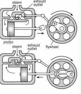 Bild 2: Nach diesem Prinzip liefen die ersten Dampfmaschinen und Lokomotiven.