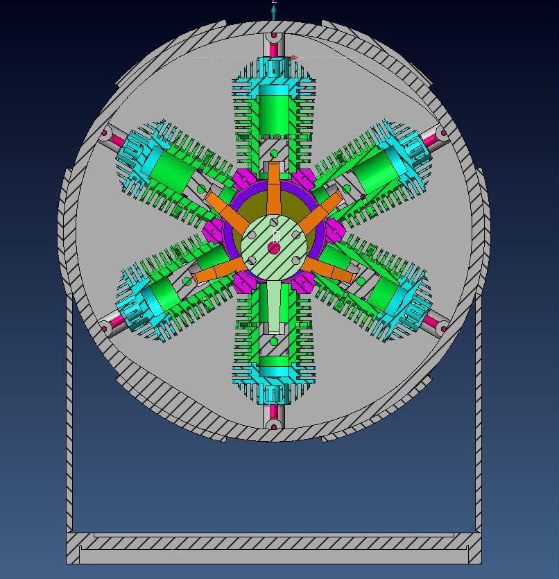 Hier dreht die gesamte sternförmige Zylinderanordnung