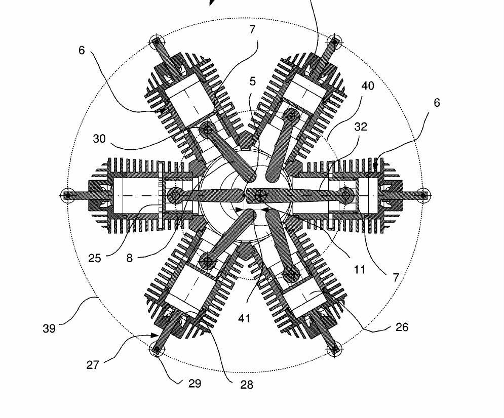 In einer Mehrfachanordnung liegen sogar Kolben und Zylinder in einer Schicht und nicht mehr hintereinander entlang der Kurbelwellenachse: